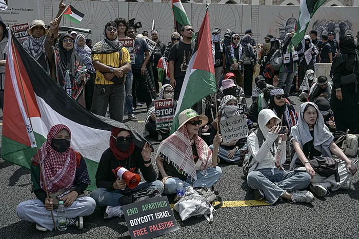 ABD Başkanı Donald Trump'ın uçağının Malezya'nın başkenti Kuala Lumpur'a iniş yaptığı sıralarda çok sayıda vicdan sahipleri, İsrail'in Gazze Şeridi'nde gerçekleştirdiği soykırımı kınadı.