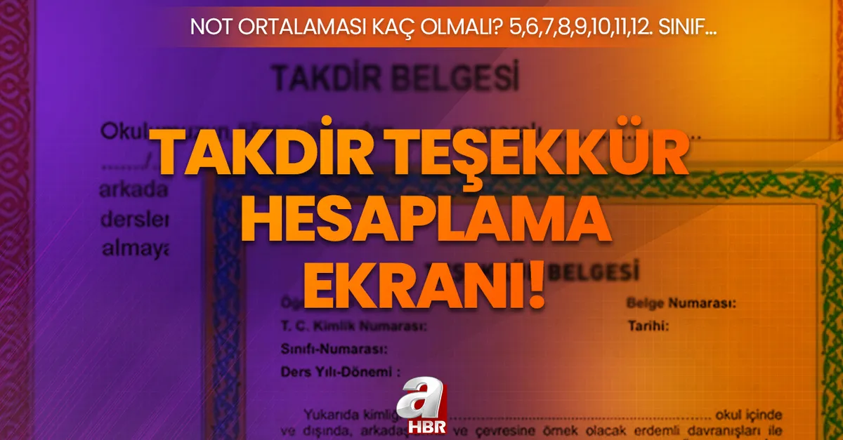Öğrencilerin karnelerini alacakları gün yaklaşırken, takdir ve teşekkür belgesi alabilmek için gereken puanlar ve şartlar da önem kazanıyor. İşte takdir ve teşekkür belgesi hesaplama detayları...
