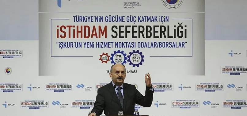 ÇALIŞMA ve Sosyal Güvenlik Bakanı Mehmet Müezzinoğlu, İstihdam Seferberliği kapsamında İŞKUR ile Türkiye Odalar ve Borsalar Birliği (TOBB) arasında "Oda ve Borsalarda İŞKUR Hizmet Noktası Kurulması Protokolü"nün TOBB İkiz Kuleler'deki imza törenine katıldı. Törende Çalışma Hayatında Milli Seferberlik Programı çerçevesinde toplam hedeflenen istihdamın 880 bin olduğu açıklandı.