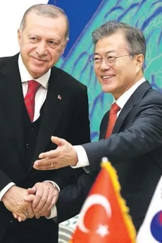 Cumhurbaşkanı Recep Tayyip Erdoğan'ın, Güney Kore ziyaretinin ikinci gününde ekonomi gündemi öne çıktı. Güney Kore'nin milyarlarca dolarlık iş hacmine sahip dev şirketleri olan Hyundai, SK, LG, Hanwha, Daelim ve GS firmalarının üst düzey yöneticilerini kabul ederek Türkiye'ye yatırım çağrısı yaptı. Erdoğan, ayrıca teknoloji devi Samsung'un başkent Seul'deki kampusu olan Samsung Dijital Şehri ziyaret etti. Cumhurbaşkanı Erdoğan, Hyundai Motor Yönetim Kurulu Başkan Yardımcısı Euisun Chung ve Hyundai Rotem CEO'su Seung-Tack Kim'in de aralarında bulunduğu şirket üst düzey yöneticilerinden, özellikle Türkiye'deki üretim kapasitelerinin artırılmasını, daha katma değerli yeni modellerin Türkiye'de üretilmesini istedi. Türkiye'de Avrasya Tüneli, 1915 Çanakkale Köprüsü, Yavuz Sultan Selim Köprüsü ve Tufanbeyli Termik Santrali projelerinde yer alan SK firmasının CEO'su Jason Jaehyun Ahn ise özellikle Kanal İstanbul projesini takip ettiklerini belirtti.