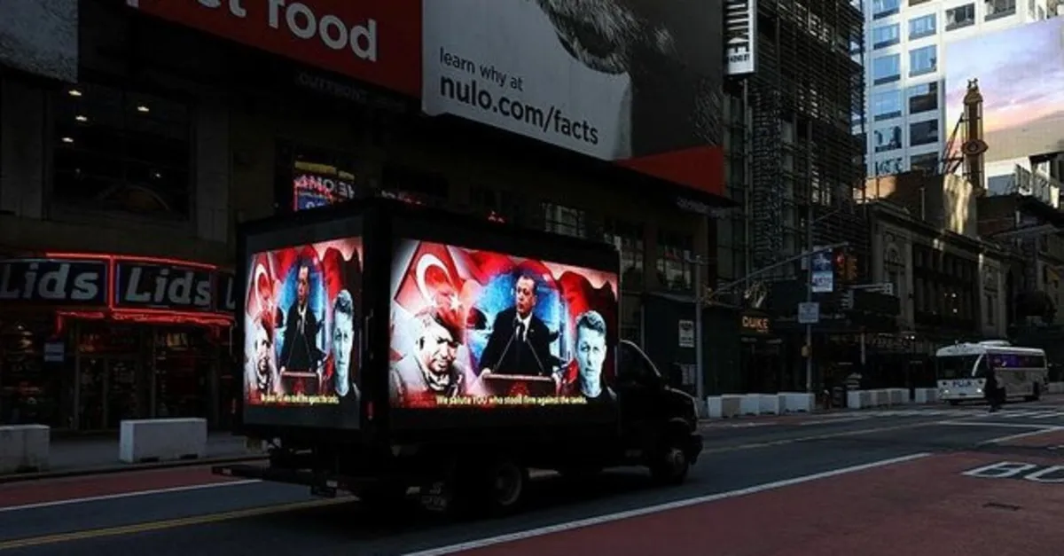 FETÖ mensuplarına ait bir grup tarafından, Times Meydanı'na yakın 42. sokak ile 8. Cadde köşesindeki dijital ekrana Türkiye'yi karalamaya yönelik verilen reklam, Türk Amerikan toplumunun şiddetli tepkisine neden olmuştu.