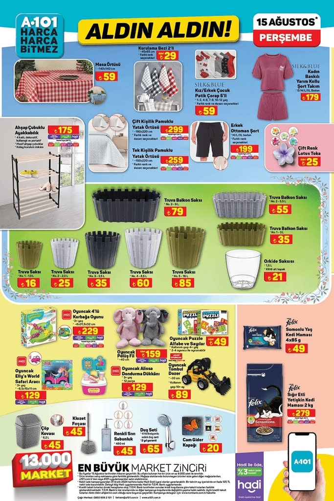 A101, 15 Ağustos haftasına özel aktüel ürünler kataloğunu yayınladı. Bu hafta, tam 10 sayfadan oluşan katalogda, çeşitli ürünler ve fırsatlar merak konusu oldu. Katalogda yer alan ürünlerin detayları ve fiyatları hakkında bilgi almak isteyenler, haberimizde öne çıkan ürünler ve fiyatlarıyla ilgili tüm ayrıntılara ulaşabilirler.
