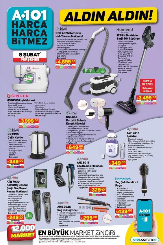 A101 8 Şubat aktüel ürünler kataloğu belli oldu! A101’de bu hafta Singer dikiş makinesi, dikey süpürge, buharlı kırışık giderici uyguna satışta
