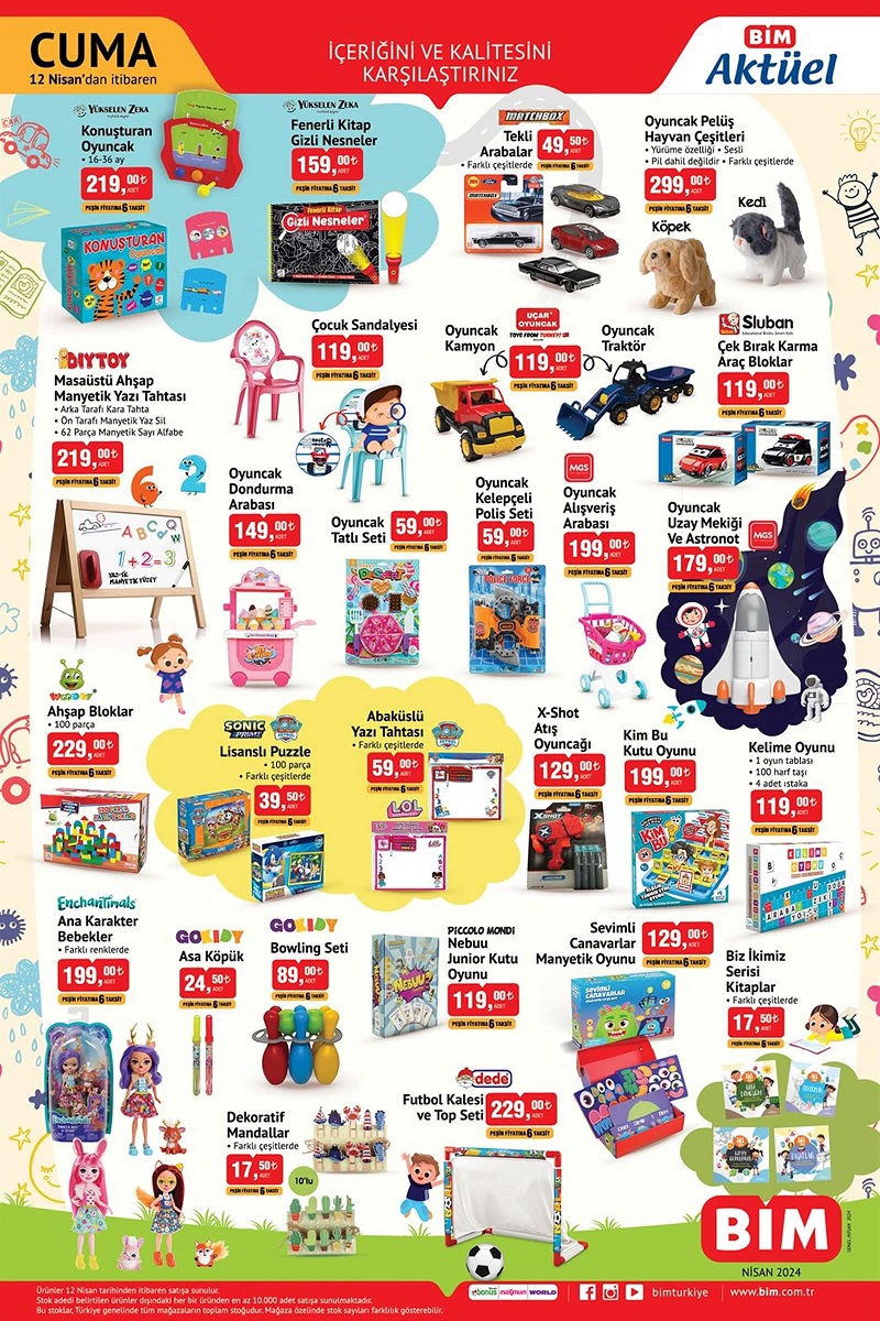 BİM, 18 Nisan aktüel ürünler kataloğunda yer alacak ürünlerin tam listesini yayınladı. 19 Nisan 2024 tarihine kadar geçerli olacak indirim kampanyası kapsamında Senna 43" Frameless Full HD Google TV 6.899 TL, HP Victus FA0008NT Laptop 27.999 TL, Tek Kapaklı 5 Raflı Çok Amaçlı Dolap 1.099 TL, Heifer Şarjlı Süpürge 1.199 TL, Erinöz 3 Kişilik Gölgelikli Luka Salıncak 7.999 TL, Katlanır Kamp Sandalyesi 249 TL, Katlanır Kamp Sandalyesi 229 TL, Hisar Düdüklü Tencere 649 TL, Benante Çerezlik Seti 179 TL, Emsan Standlı Baharat Seti 3'lü 379 TL, Chef's Sütlük 14 cm 119 TL fiyatlarla satışa sunuluyor. İşte BİM haftanın indirim afişi…