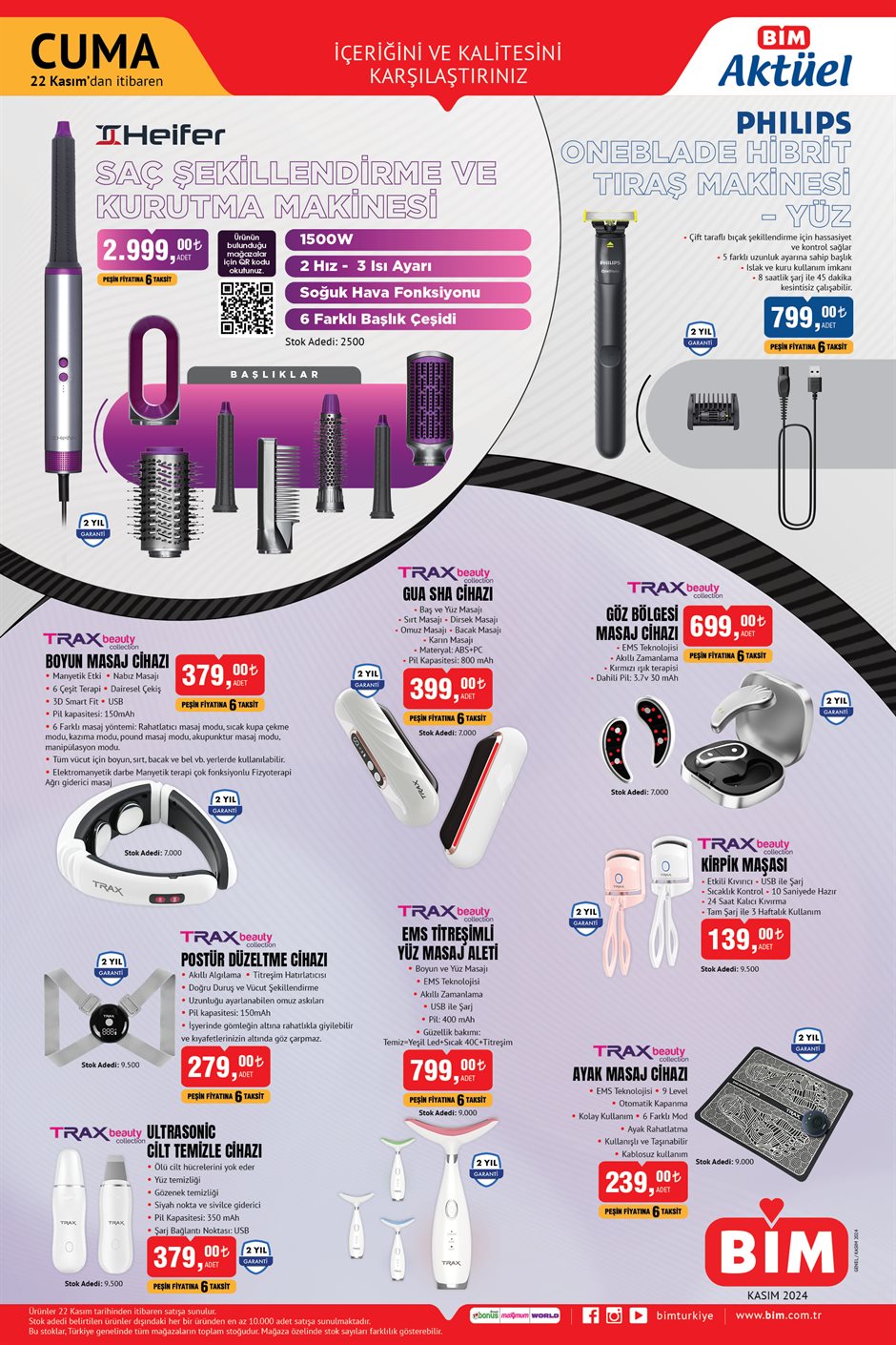 BİM, 22 Kasım tarihli aktüel ürünler kataloğunu yayınladı. Salı ve Cuma günleri satışa sunulan bu kataloglar, her hafta müşterilerin ilgisini çeken indirimli ürünlerle dikkat çekiyor. Bu hafta da geniş bir ürün yelpazesiyle alışverişseverlerin karşısına çıkan BİM, 19-22 Kasım tarihleri arasında geçerli olacak fırsatları duyurdu. İşte BİM'in yeni aktüel indirim katalogunda yer alan başlıca ürünler...