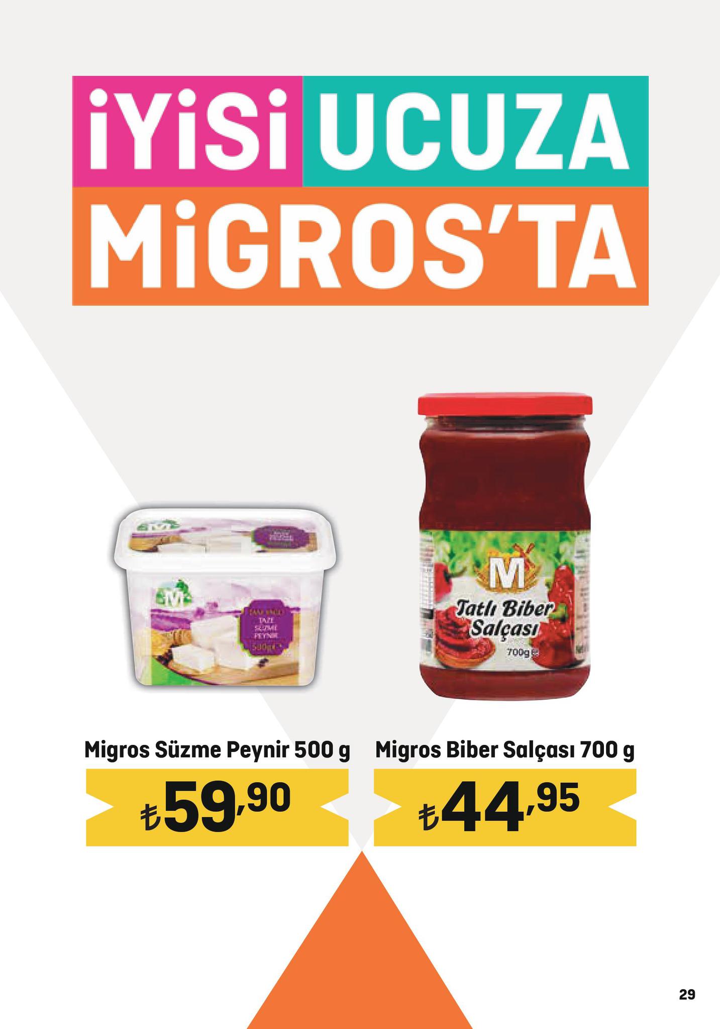 Migros 26 Nisan indirim kataloğu yayında! Migros’da 5KG Un 69,00 TL, Süzme Peynir 59,90 TL, Salça 39,95 TL, Ayçiçek Yağı 5L 199,95 TL’den satışta
