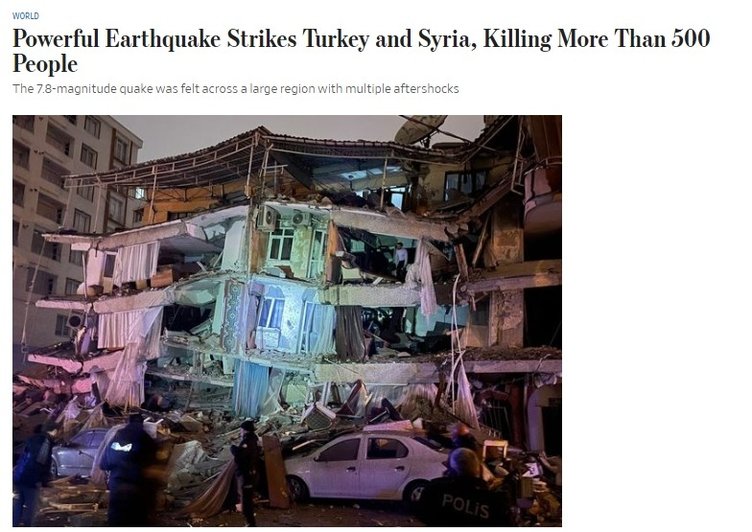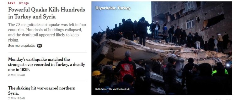 Kahramanmaraş'ta meydana gelen 7.7 büyüklüğündeki deprem Türkiye'yi yasa boğarken, dünya da ülkemizin acısını paylaştı. Ajanslar haberlerinde genellik bir noktaya dikkat çekeren insanların korku dolu anlara uykularında yakalandığını ifade etti.