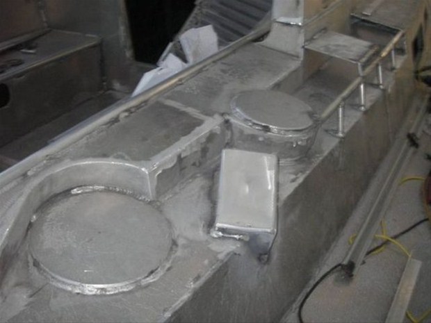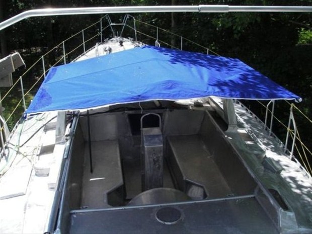 Yatın yapımında ahşap ve alüminyum kullanıldı.