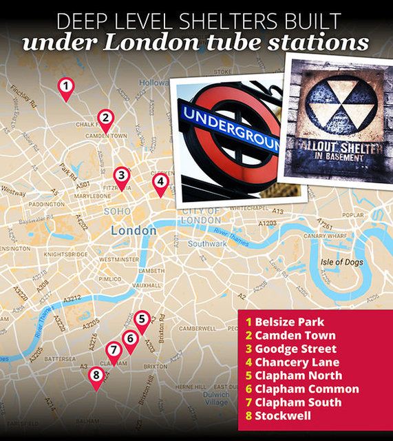 Chancery Lane, Belsize Park, Camden Town, Goodge Street, Clapham North, Clapham Common, Clapham South ve Stockwell metro istasyonlarının altında yer alan sığınakların yanı sıra St. Paul's ve Oval istasyonlarının altına da İkinci Dünya Savaşı sırasında sığınak yapımına başlandığı ancak savaşın sona ermesinin ardından bu sığınakların tamamlanmadığı belirtildi.