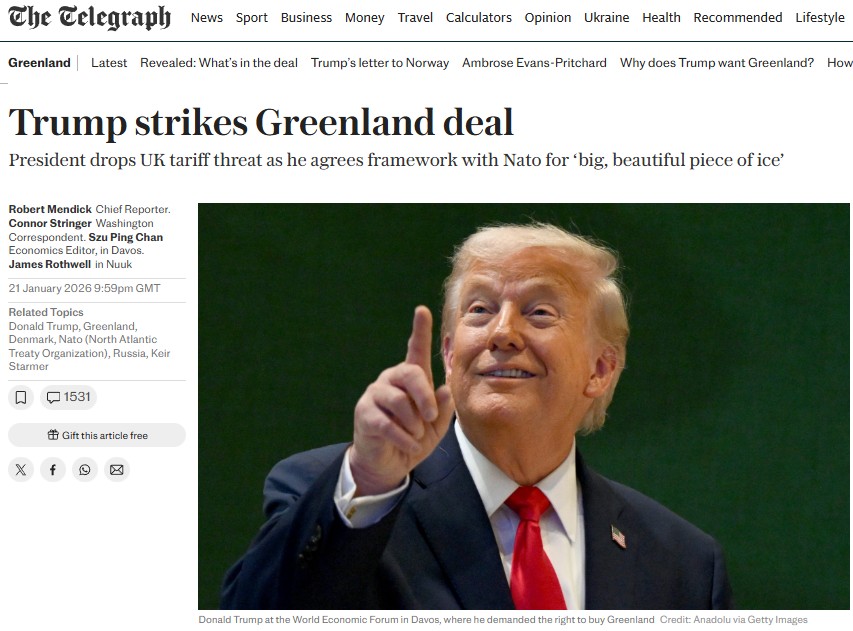 Trump, son haftalarda Grönland'ı ABD'nin güvenliği açısından "vazgeçilmez" olarak nitelendirmiş, Danimarka'ya baskı kurmak amacıyla sekiz Avrupa ülkesinin ABD'ye ihracatına ek gümrük tarifeleri getirmekle tehdit etmişti. Bu çıkışlar NATO içinde ciddi rahatsızlığa yol açarken, küresel piyasalarda da yeni bir ticaret savaşı endişesini artırmıştı.
