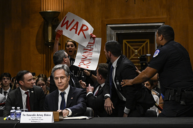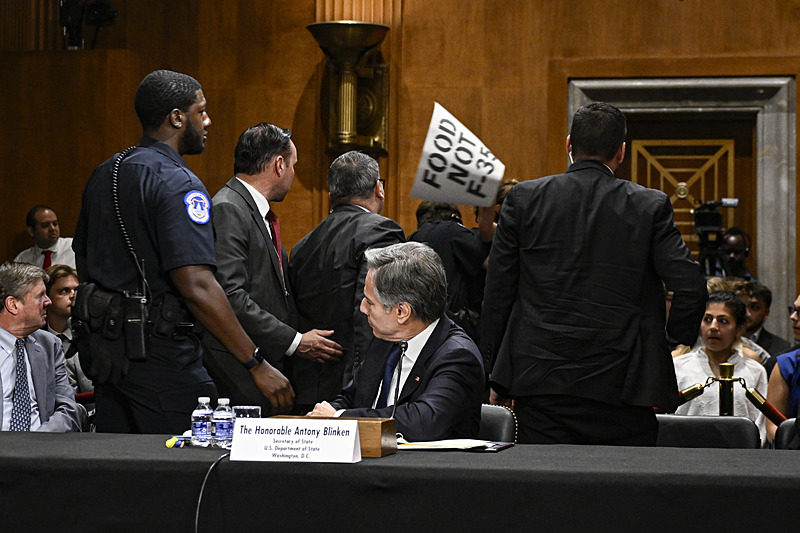 ABD Dışişleri Bakanı Antony Blinken, Kongre'de bakanlığının bütçesi hakkında ifade verdiği sırada Filistin destekçisi katılımcılar tarafından "Gazze kasabı olarak anılacaksın" sözleriyle protesto edildi. Blinken, konuşmasına başladığı sırada salonda bulunan bir katılımcı elinde Filistin bayrağı ile ayağa kalkarak, "İsrail tarafından öldürülen Hind Receb 6 yaşındaydı. Blinken, sen Gazze kasabı olarak anılacaksın. Sen masum Filistinlilerin katili olarak anılacaksın." diye bağırdı.