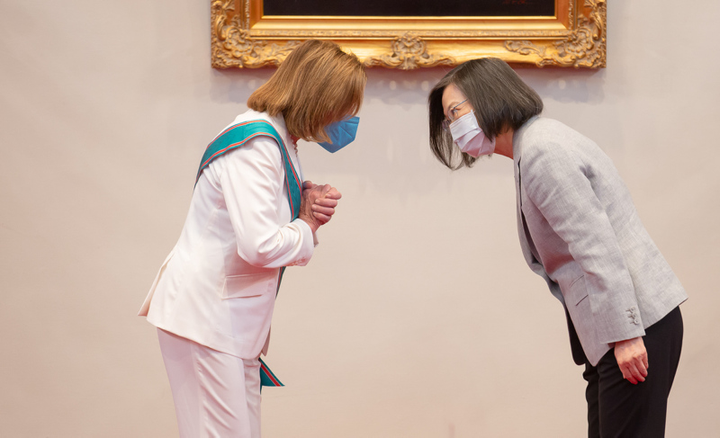 Bu ziyaret karşısında Çin'in tepkisi çok sert oldu. Askeri hareketliliğin arttığı bölgede Tayvan'dan Çin'i kızdıracak bir hamle daha geldi. Tayvan lideri Tsai, Tayvan'ın 'tek Çin' olmasını temsil eden Uğurlu Bulutlar Düzeni isimli şeref madalyasını Pelosi'ye verdi.