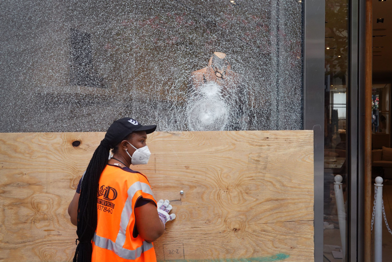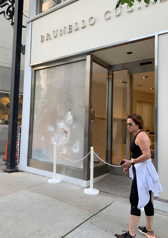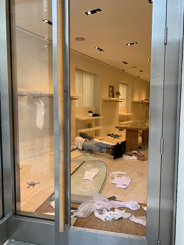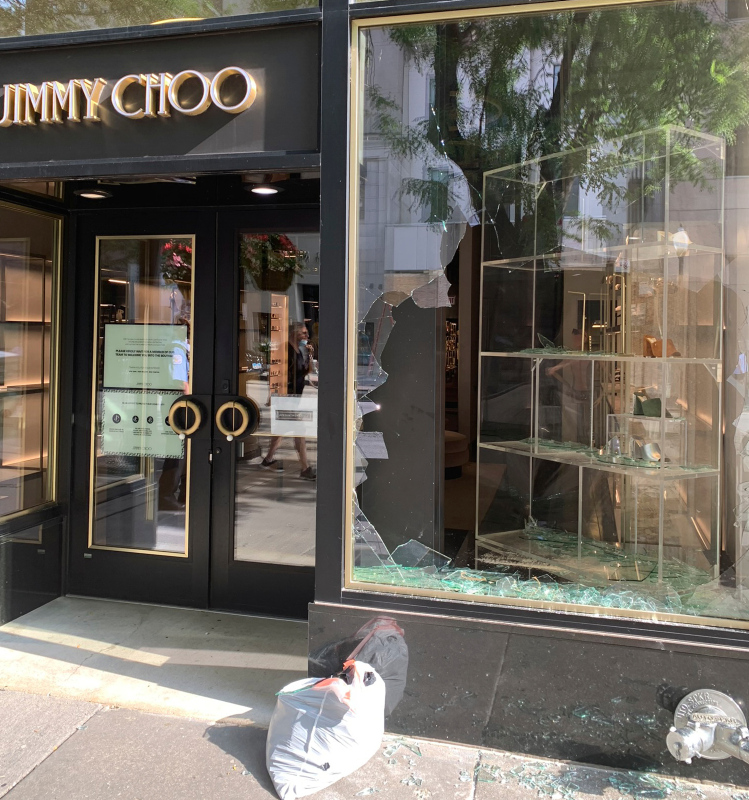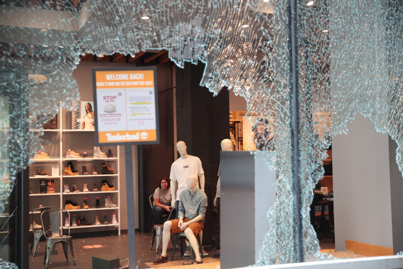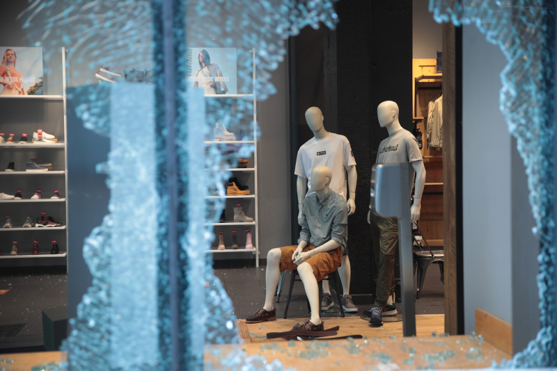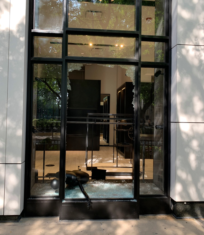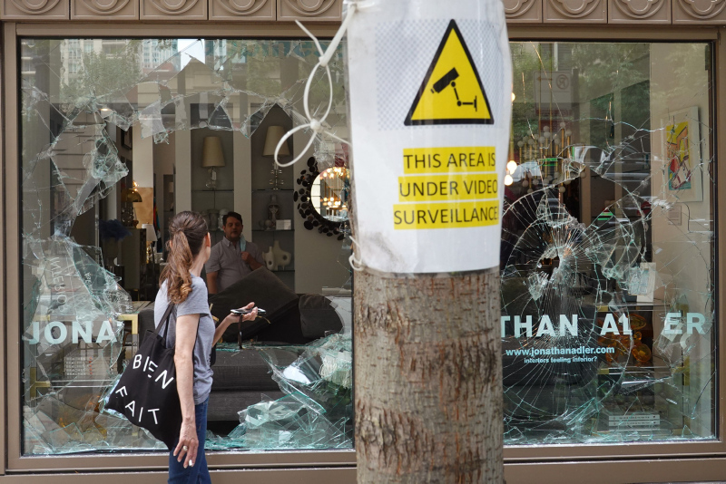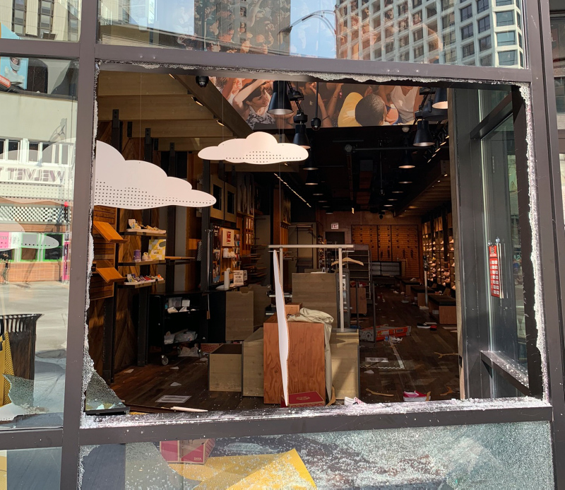 Göstericiler, çıkan olaylarda şehrin alışveriş bölgesi olarak bilinen Magnificent Mile'da bulunan lüks mağazaların camlarını kırarak yağmaladı.