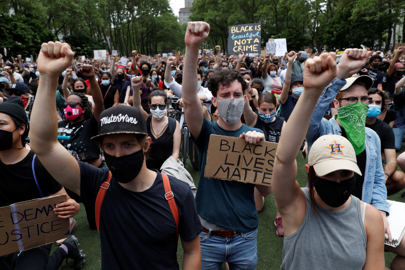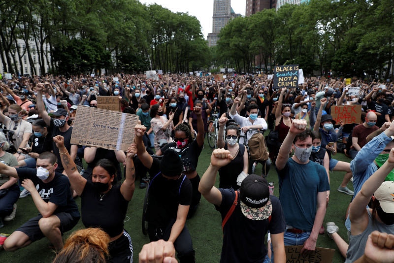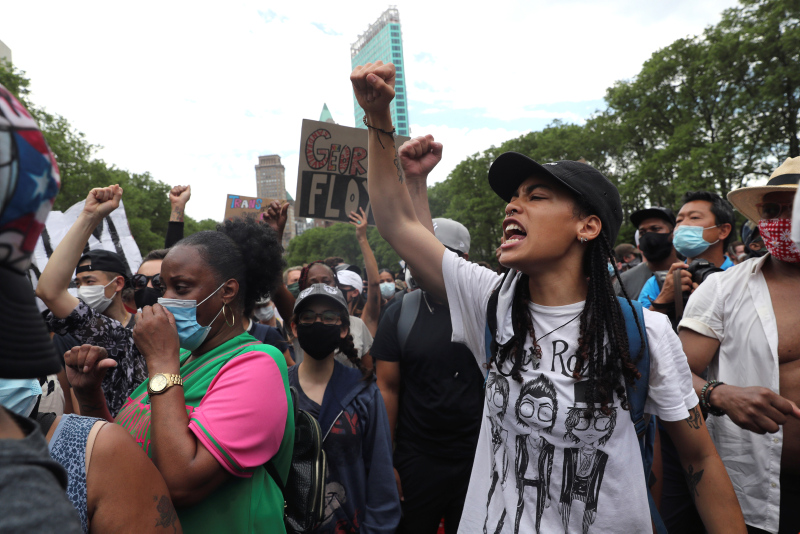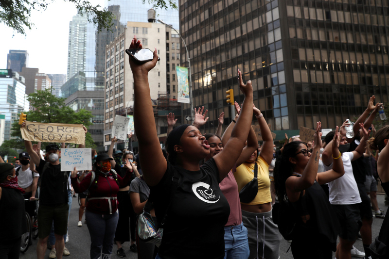 New York'ta Harlem'deki göstericiler, protestolara Floyd'a saygı amaçlı takım elbiselerle katıldı. Brookyln'de ise binlerce gösterici, alanda olan New York Belediye Başkanı Bill de Blasio'yu yuhaladı.
