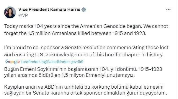 ABD'nin ilk kadın, siyahi ve Asya kökenli başkan adayı olan Harris, California Eyalet Savcılığı görevi zamanında 1915 olaylarını 'soykırım olarak tanıyan tasarıyı' imzalamasıyla biliniyor. Peki, Harris kimdi? İşte detaylar...