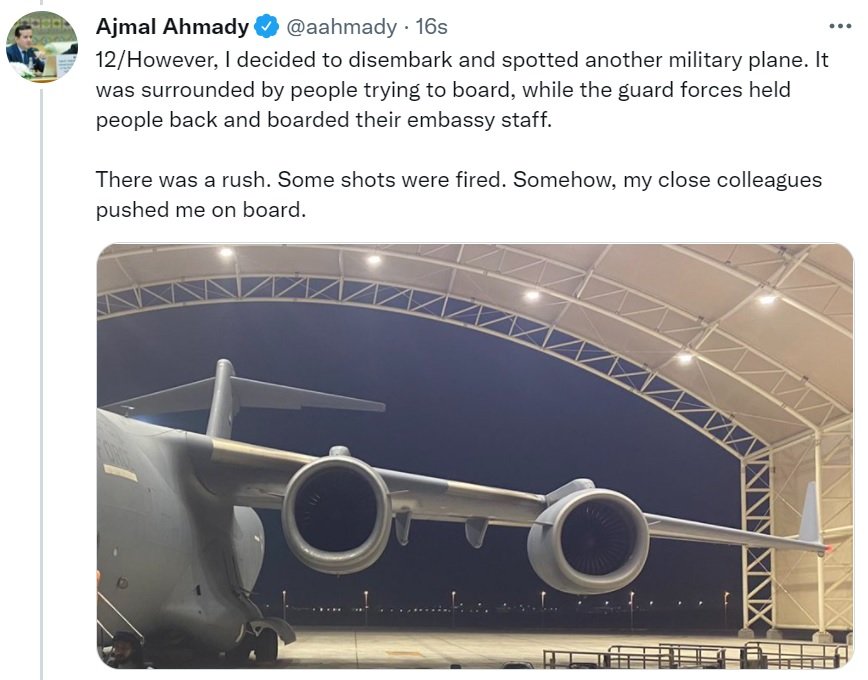 Afganistan'ın başkenti Kabil'de yaşayanlar dün sabah yepyeni bir dünyaya uyandı. Taliban militanları ellerinde silahlarla köşe başlarında bekliyor. Ülkeden kaçmak isteyenlerin yığıldığı Kabil Havalimanı'ndan ise eşi benzeri olmayan görüntüler geldi. Afganistan Merkez Bankası Başkanı ve Cumhurbaşkanı Ekonomi Danışmanı Ajmal Ahmady, ülkeden kaçış hikayesini Twitter'dan anlattı. Öte yandan Rusya basını, Afganistan Cumhurbaşkanı Eşref Gani'nin dört araba ve bir helikopter dolusu nakit parayla ülkeden kaçtığını, tüm nakitinin araçlara sığmadığı için geride bir miktar para bırakmak zorunda kaldığını iddia etti. Şu an nerede olduğu bilinmeyen Gani, Taliban'ın Kabil'e neredeyse rakipsiz girmesiyle pazar günü Afganistan'dan ayrıldığını açıkladı ve Facebook gönderisinde, amacının kan dökülmesini önlemek olduğunu söyledi.