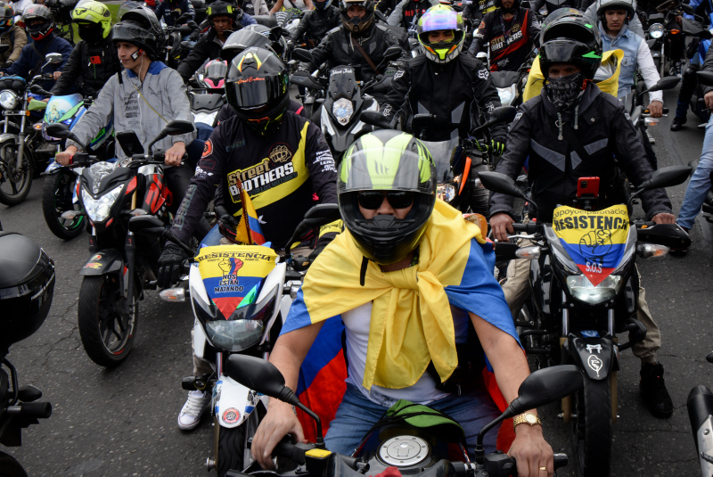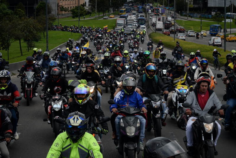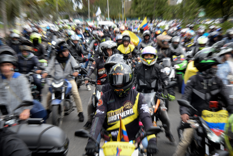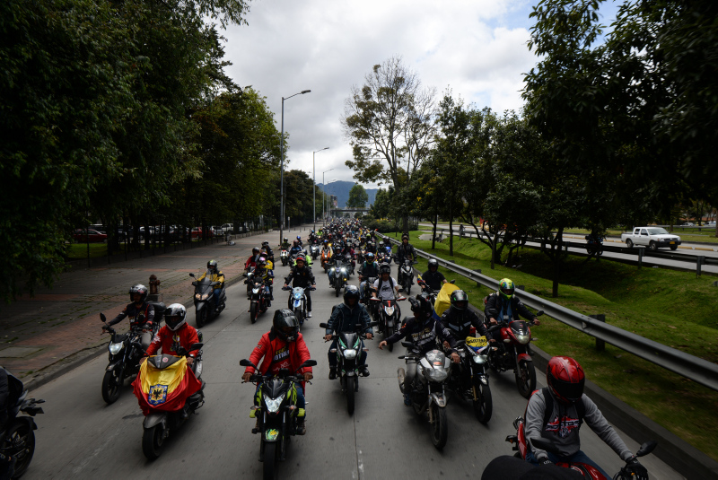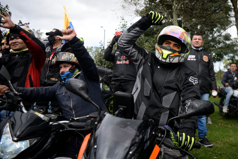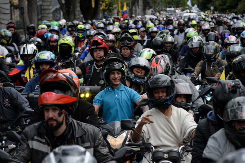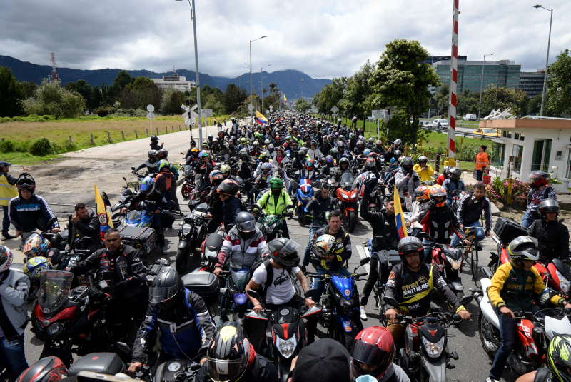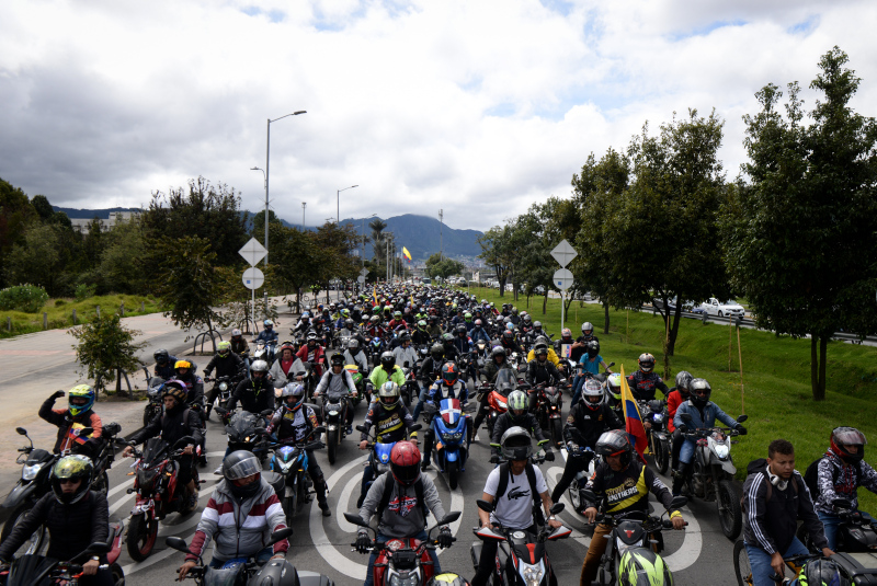 Gösteriler nedeniyle trafik yoğunluğunun had safhaya çıktığı Bogota'da motosiklet sürücüleri bir süre yolu trafiğe kapatmasına rağmen polis müdahalede bulunmadı.