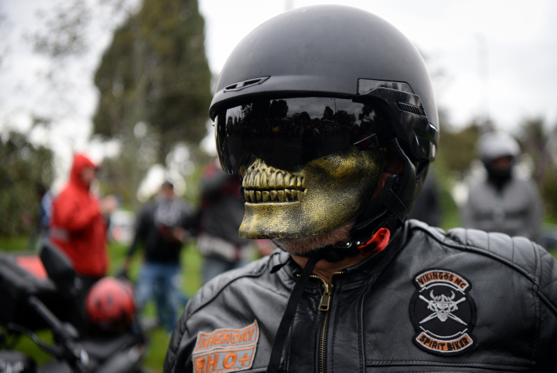 Başkent Bogota'daki Virgilio Barco Kütüphanesi önünde toplanan onlarca motosiklet örgütü, kentin en hareketli caddelerinden birini trafiğe kapattı.
