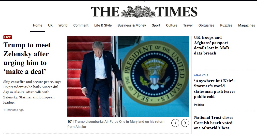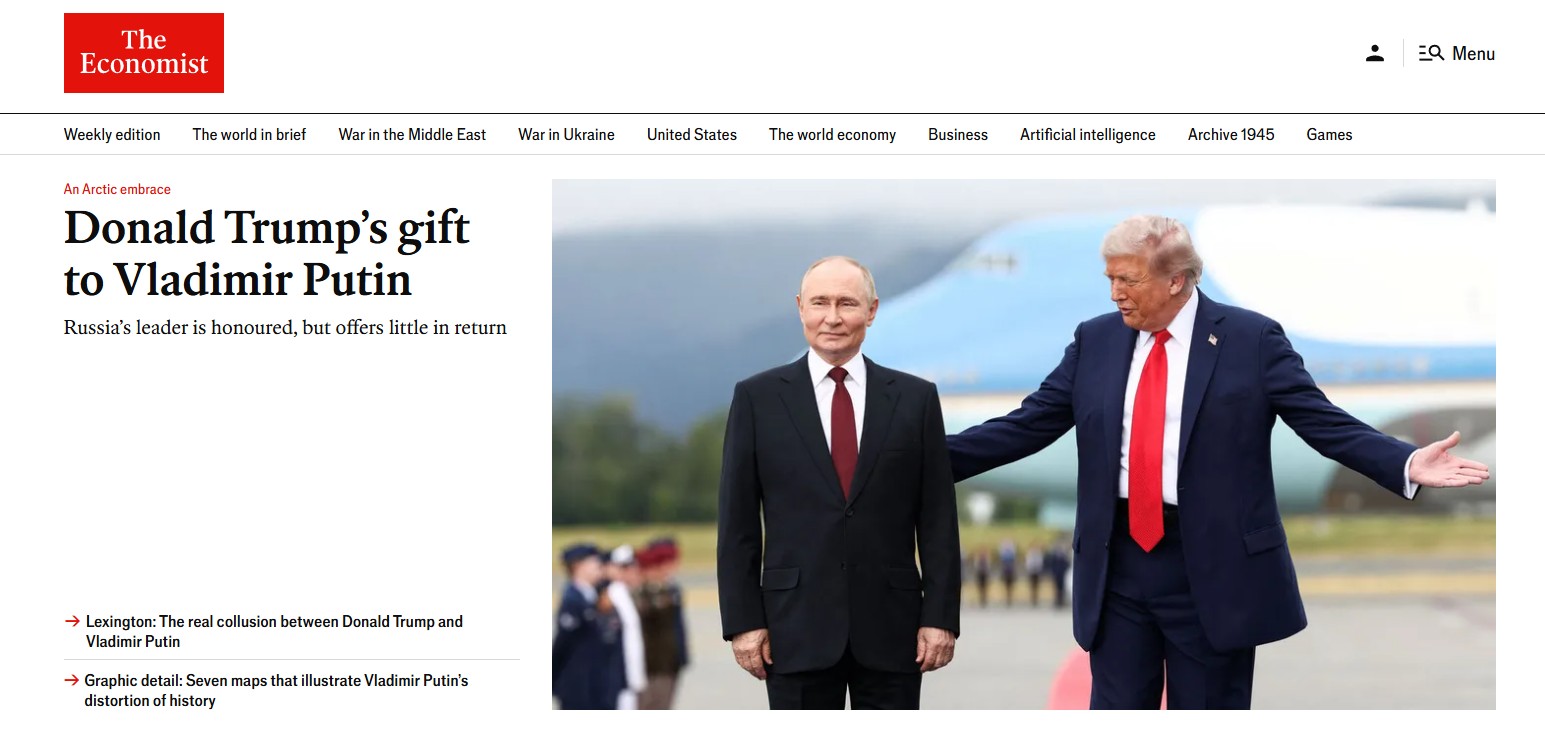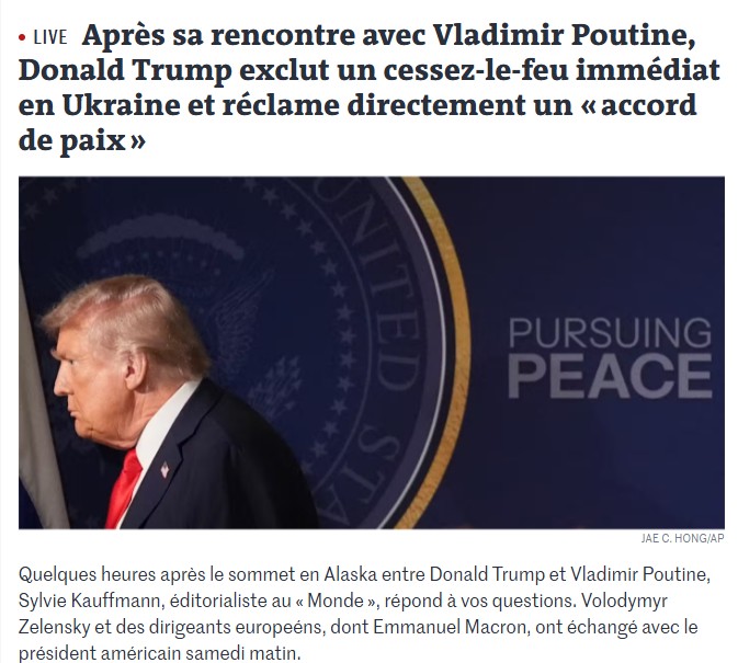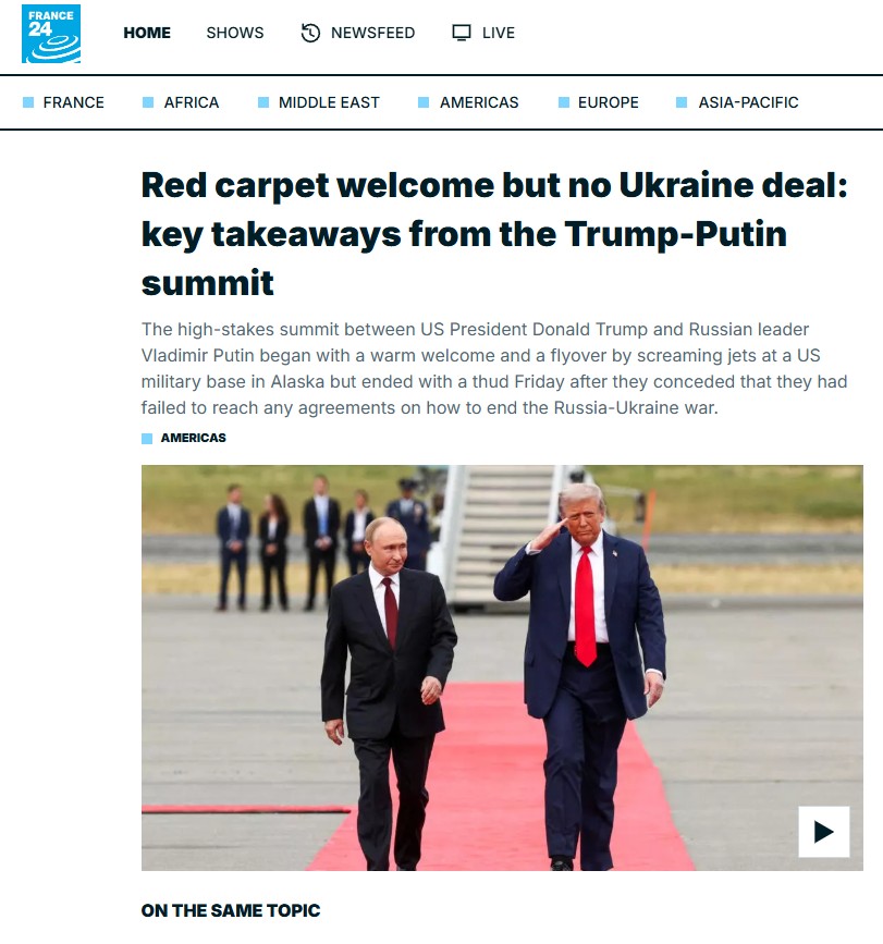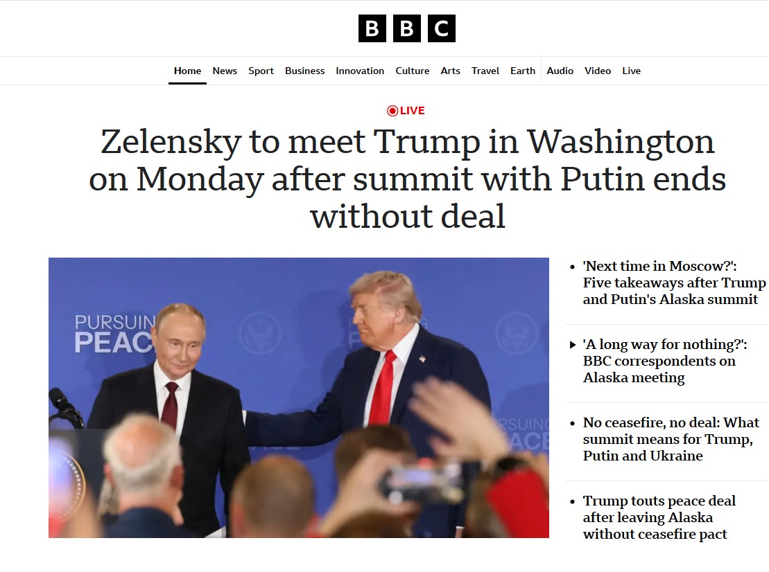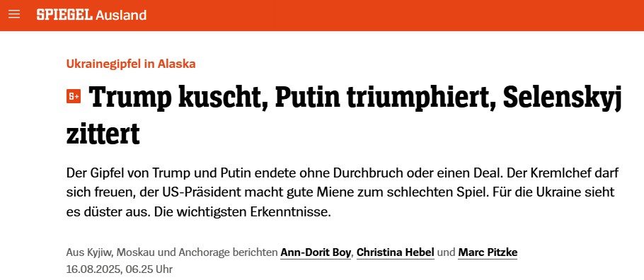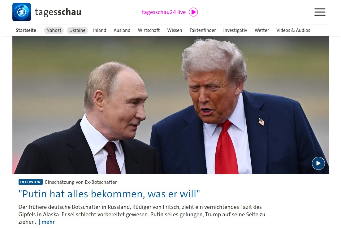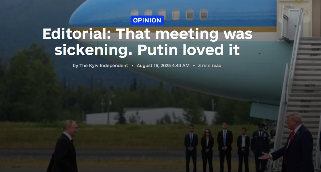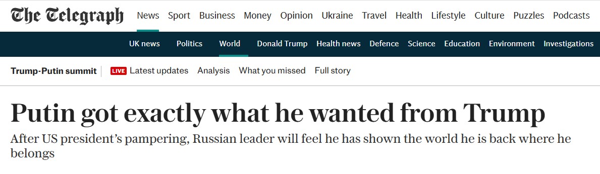 Gazetedeki analizde, "Doğu Ukrayna'yı yerle bir eden ve her gece apartmanları bombalayan Vladimir Putin, kırmızı halısını ABD'de açtı. Ancak görüşmenin mimarı Donald Trump, anlaşmasını alamadı. Ne bir taviz, ne bir vaat, ne de buna benzer bir şey." ifadelerine yer verildi.