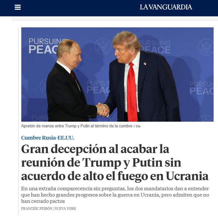 Alaska'daki zirveden Ukrayna-Rusya savaşında bir ateşkes ya da çözüme yönelik anlaşma çıkmaması, İspanyol basınında ABD Başkanı Trump'ı hedef alan sert eleştirilere neden oldu.