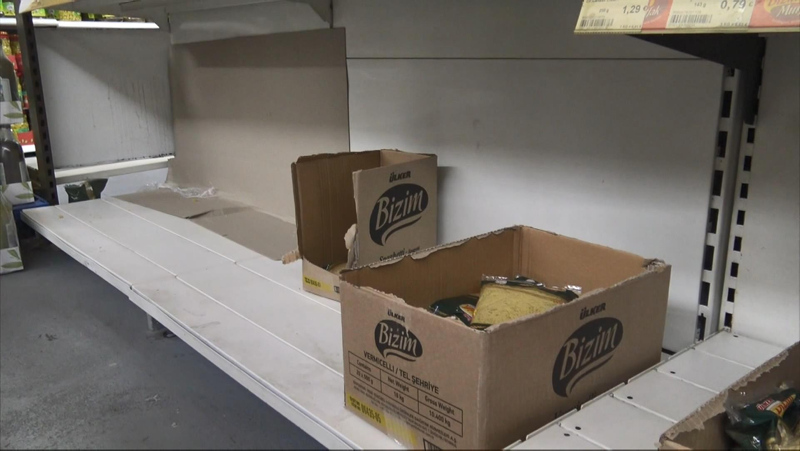 Köln'ün Mülheim semtinde bir markette yöneticilik yapan İsmail Mutlu, "Çok aşırı bir panik var millette. Uzun süre dayanabilen, bakliyat, makarna, haşlama çeşitleri, peynir, sucuk? Ellerine ne geçerse alıyorlar. Çok şaşırdık. Rafları doldurmakta güçlük çekiyoruz. Böyle bir şeyi ilk defa gördüm. İnsanlar aşırı bir panik içerisindeler" dedi. Mutlu, elindeki cep telefonundan geçen hafta boşalan rafların görüntüsünü gösterdi. Mutlu, un, şeker gibi ürünlerin ilk tükenen ürünler olduğunu, temizlik ürünlerinin, özellikle kolonyanın tükendiğini sözlerine ekledi.