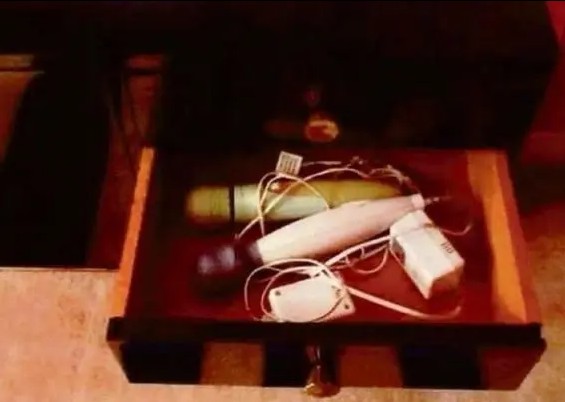 Dairenin farklı bölümlerinde yetişkinlere yönelik objeler, çekmecelerde masaj cihazları ve duvarları kaplayan çıplak kadın fotoğrafları yer alıyor.