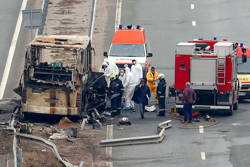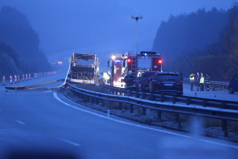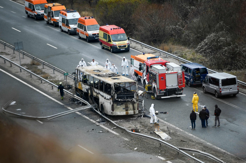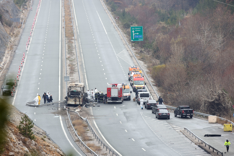 İstanbul'dan kalkan Kuzey Makedonya plakalı bir yolcu otobüsü Sofya'nın batısı Pernik kentine yakın Bosnek kötü bölgesinde dün gece saatlerinde yol kenarındaki bariyere çarptıktan sonra alev aldı.