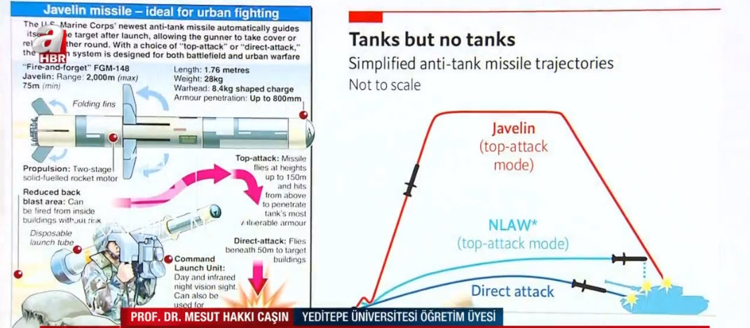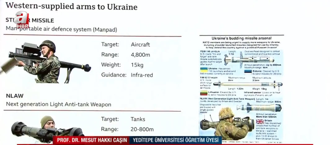 Yeditepe Üniversitesi Öğretim Üyesi Prof. Dr. Mesut Hakkı Caşın, konuyla ilgili "Batı'dan verilen Stinger füzesi Nlaw füzesi ve diğer füzeler anti-tank füzeleri özellikle bunlar içinde Javelin füzesinin çok önemli olduğunu görüyoruz. Stinger ile beraber hem uçak savar hem anti tank sınıfı füzeleri kullanılmaktadır." dedi.