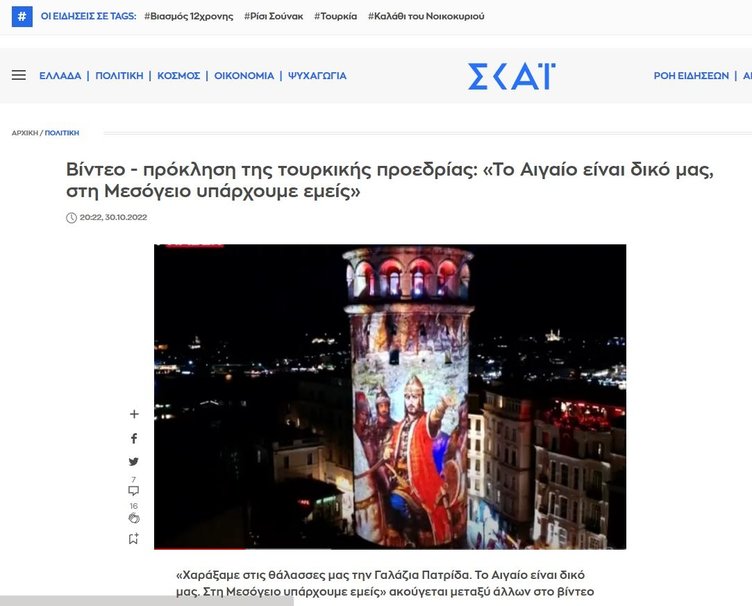 29 Ekim Cumhuriyet Bayramı dolayısıyla İletişim Başkanlığı' İstanbul'da tarihi Haydarpaşa Garı, Galata Kulesi, Ankara'da Cumhurbaşkanlığı Senfoni Orkestrası (CSO) binası ve Cumhuriyet Müzesi duvarlarına yansıyan, son teknoloji tasarımların kullanıldığı 3 boyutlu görselleri izleyici ile buluşturdu. "Cumhuriyetle Büyüyoruz, Türkiye Yüzyılı'na Giriyoruz" temalı mapping gösterileri Yunanistan'da gündem oldu. Yunan basını bu görüntüleri yeni bir meydan okuma olarak niteledi, Skandal ifadeler kullandı.