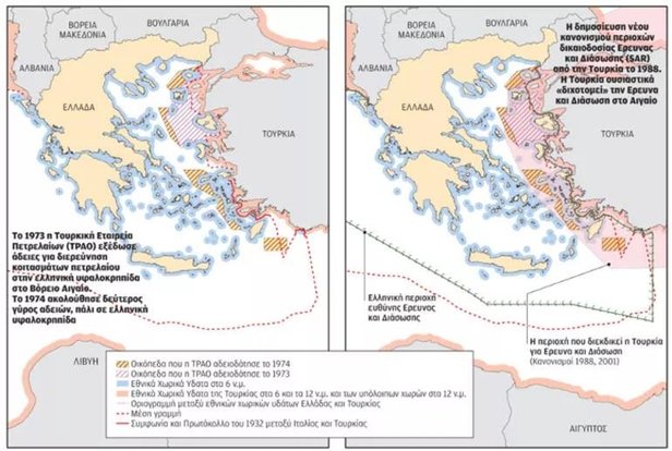 ELÇİLİKLERE YOLLANDI Bu çerçevede, Yunan Dışişleri Bakanlığı'nın Türkiye Dairesi ile Yunan Deniz Kuvvetleri Hidrografi Dairesi tarafından hazırlanan ve Türkiye'nin Ege ve Doğu Akdeniz'de 50 yıldaki taleplerini gösterdiği öne sürülen 16 harita, Yunanistan'ın yurtdışındaki büyükelçilik ile temsilciliklerine gönderildi.