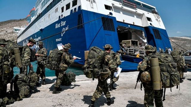 Yunanistan, Türkiye'nin kendisi için Ege'de bir tehdit unsuru olduğunu öne sürerek Lozan ve Paris Antlaşmalarının aksi yönündeki hükümlerine rağmen Doğu Ege adalarını silahlandırma politikasını savunmaya devam ediyor.