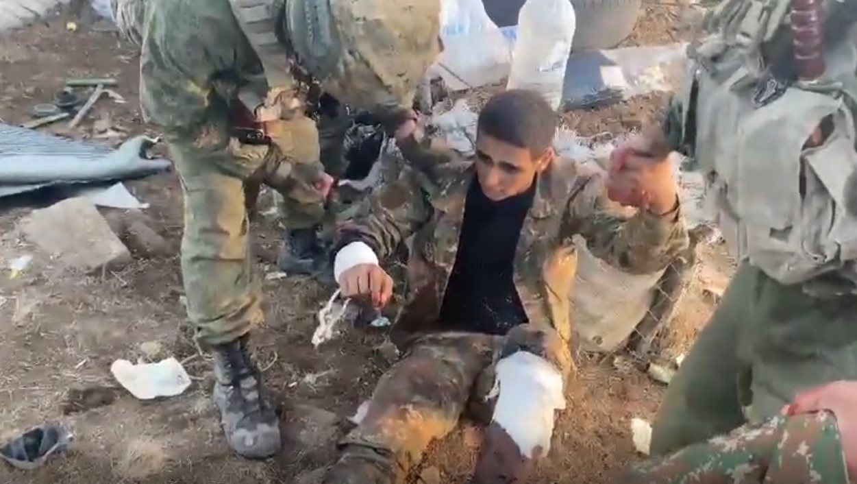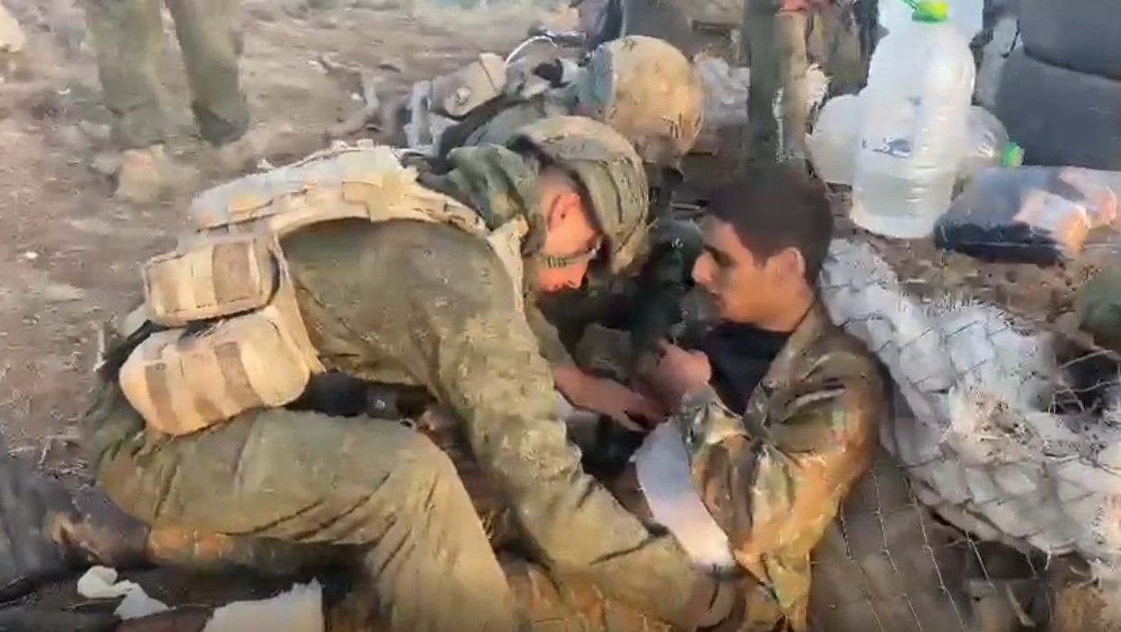 Çatışmalarda yaralanan bir Ermeni asker, Azerbaycan askeri tarafından tedavi edildi.