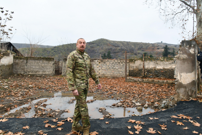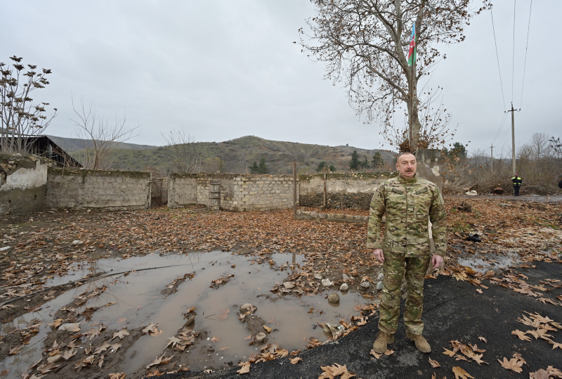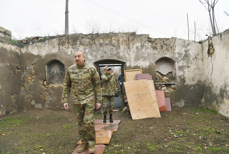 Yol güzergahında işgalden kurtarılan bir diğer il olan Zengilan'ın köylerinin de yıkık durumda olduğunu gösteren Aliyev, "Bazı evlerde yaşamışlar. Sen gel başkasının toprağını zapt et, sonra da 'buranın tarihinin Ermeni toprağı olduğunu' iddia et. Sahtekarlar, hırısızlar, yalancılar ve vahşiler bizim topraklarımızı 30 yıl işgal altında tuttu. Tüm bu görüntüler, bizim tazminat davamız için kanıt olacak." diye konuştu.