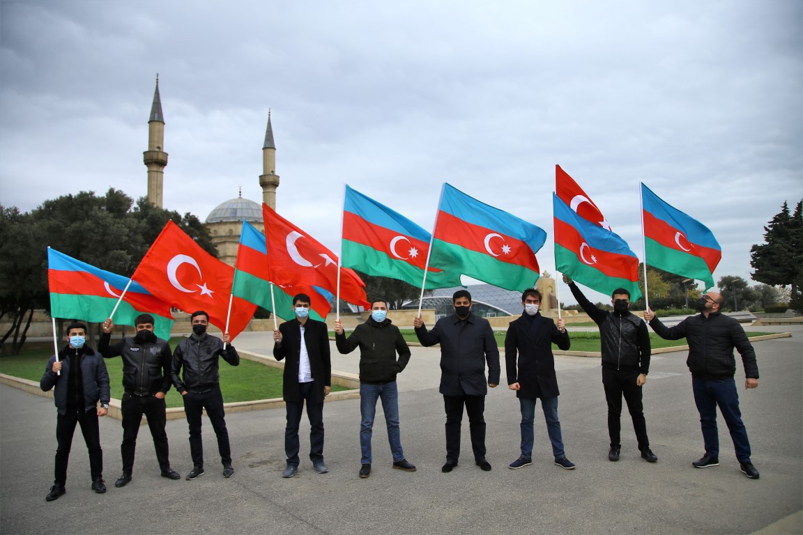 Türk ve Azerbaycan bayraklarını alarak şehitliği ziyaret eden Kelbecerliler "Yaşasın Azerbaycan ordusu, "Kelbecer bizimdir", "Karabağ Azerbaycandır" yazılı pankartlar taşıdı.