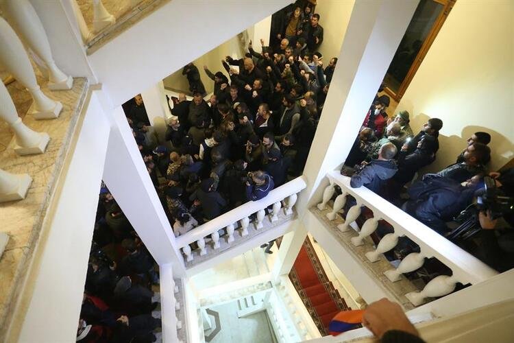 Hükümet protestosunda yaşanan karmaşadan Ermenistan Meclis Başkanı Ararat Mirzoyan da payını aldı.