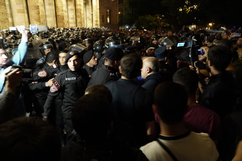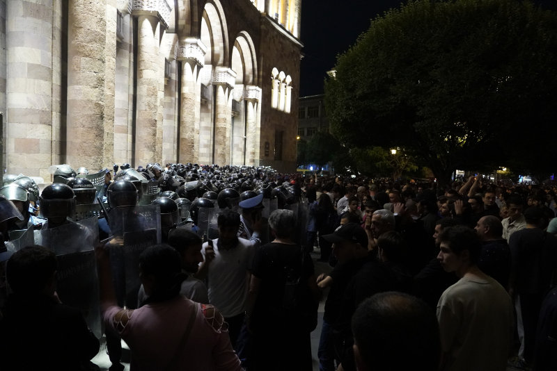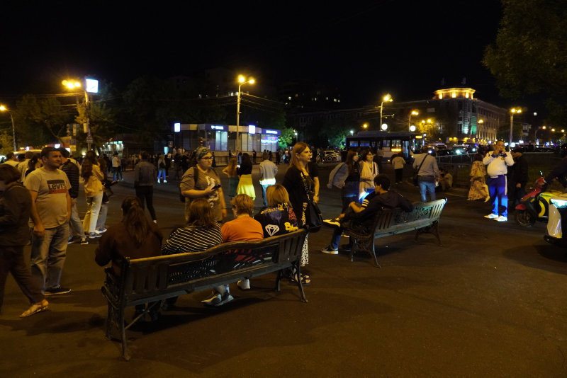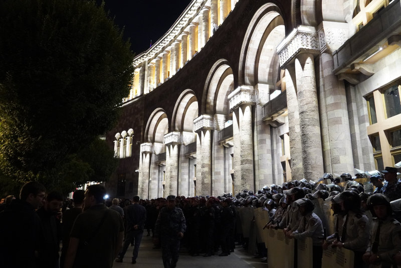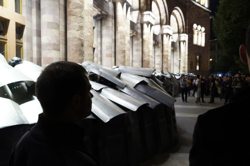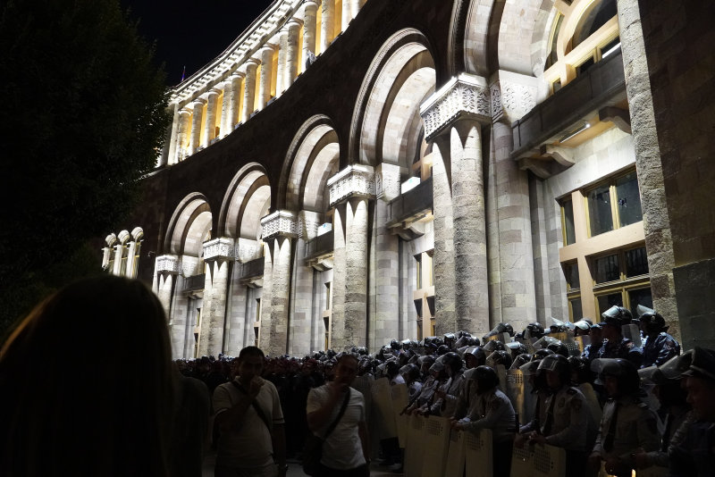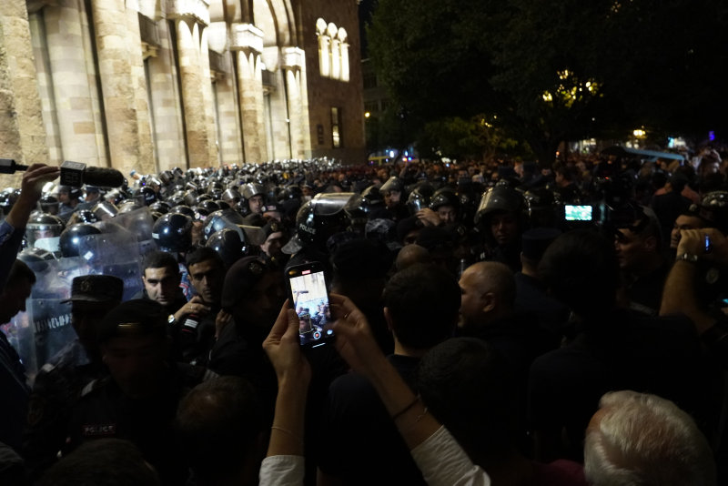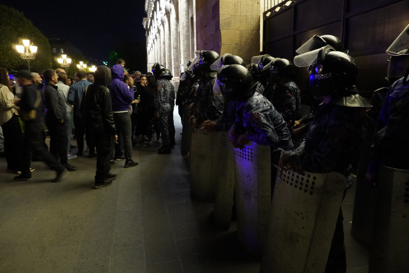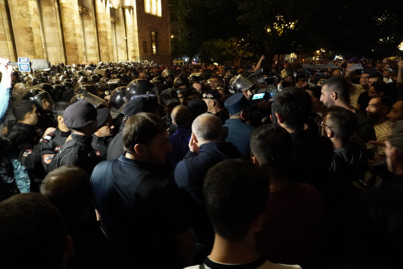 Başkent Erivan'da yürüyüş yapan Paşinyan karşıtları, meclis binası önünde toplandı. Hükümet binasını koruyan polise şişe ve taş atan göstericiler, polisle çatıştı.