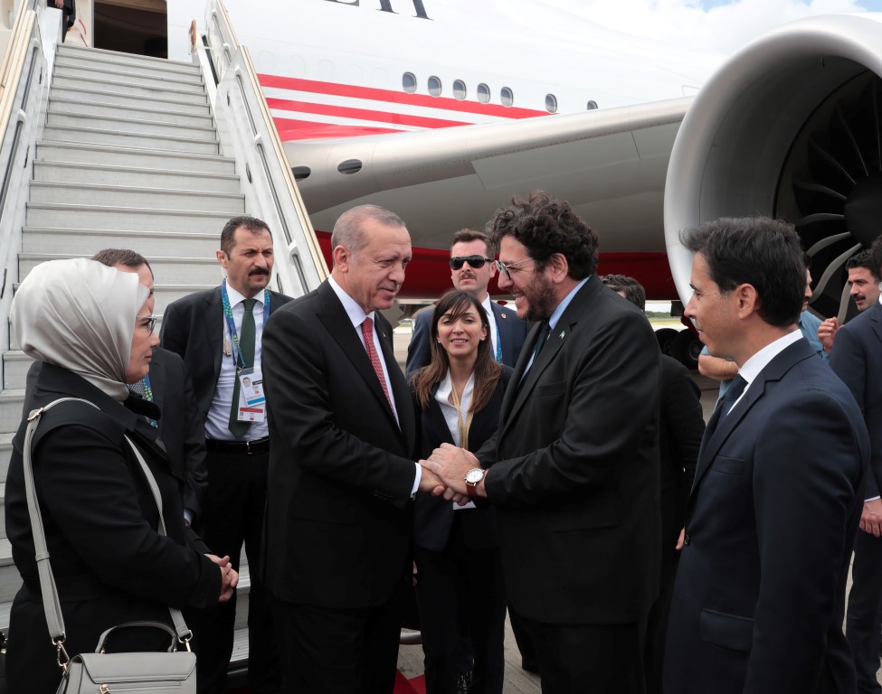 Erdoğan ile eşi Emine Erdoğan, Hazine ve Maliye Bakanı Berat Albayrak, Dışişleri Bakanı Mevlüt Çavuşoğlu ve Milli Savunma Bakanı Hulusi Akar da Buenos Aires'e geldi.