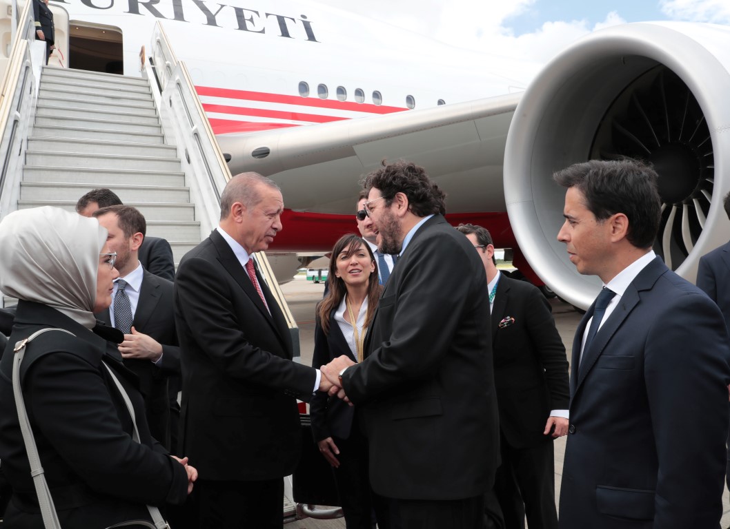 Başkan Erdoğan, Buenos Aires Ezezia Havalimanı'na gelişinde Arjantin Kültür Bakanı Pablo Avelluto ile Türkiye'nin Buenos Aires Büyükelçisi Meral Barlas ve diğer ilgililer tarafından karşılandı.