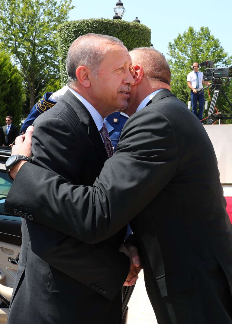 Erdoğan, Azerbaycan ziyareti kapsamında Azerbaycan Cumhurbaşkanı İlham Aliyev ile baş başa ve heyetler arası görüşme için geldiği Cumhurbaşkanlığı Sararyı'nde resmi törenle karşılandı.