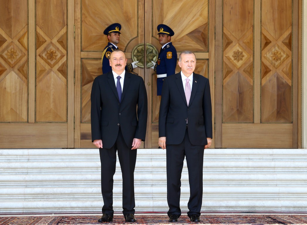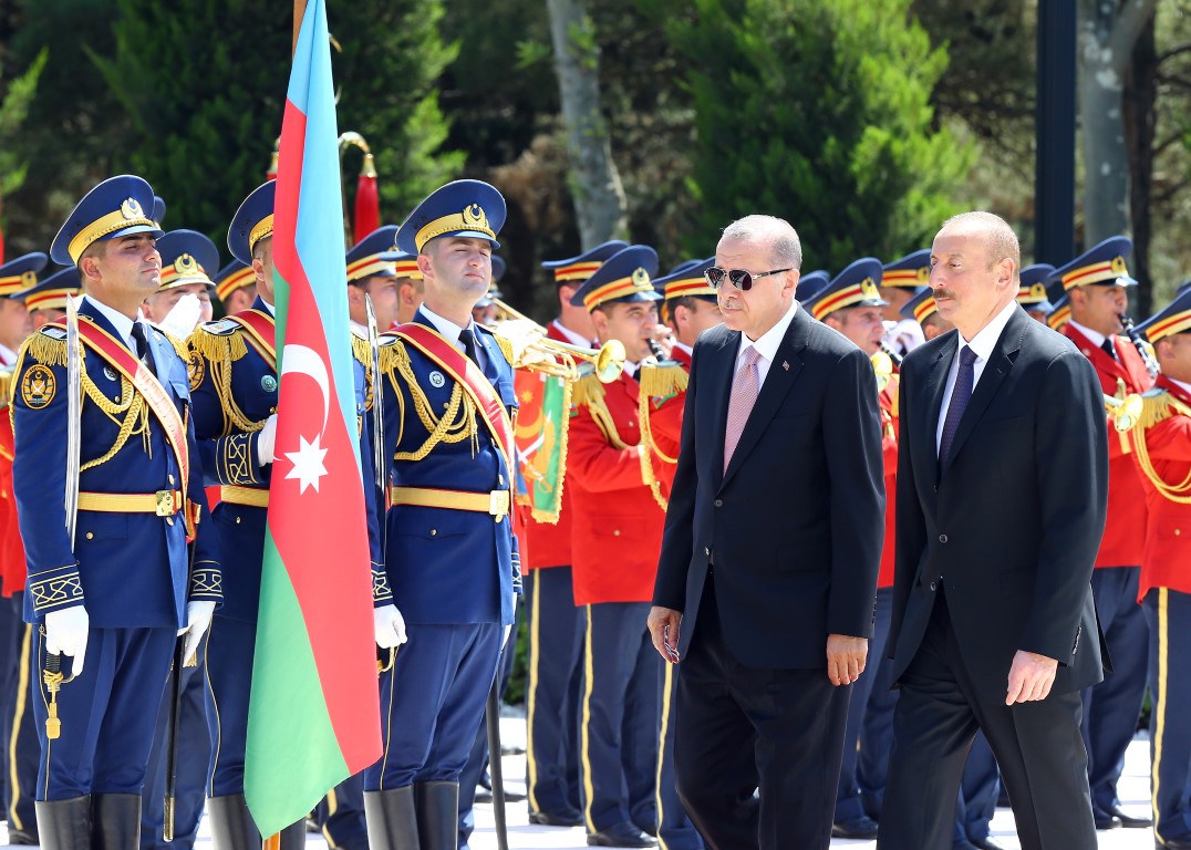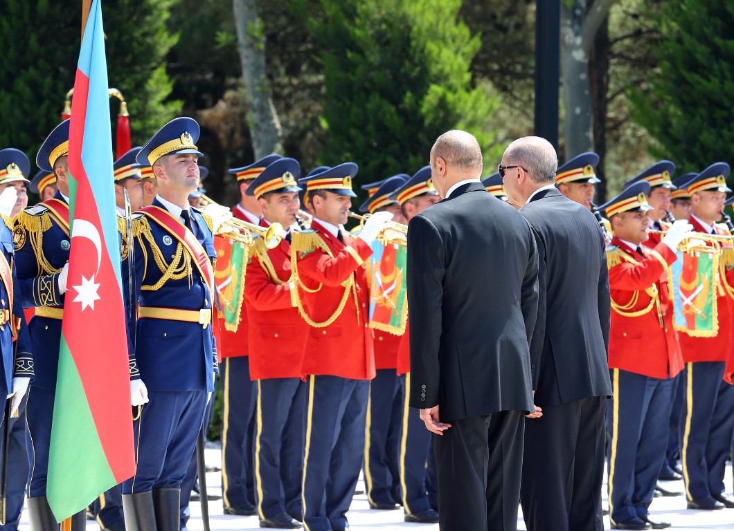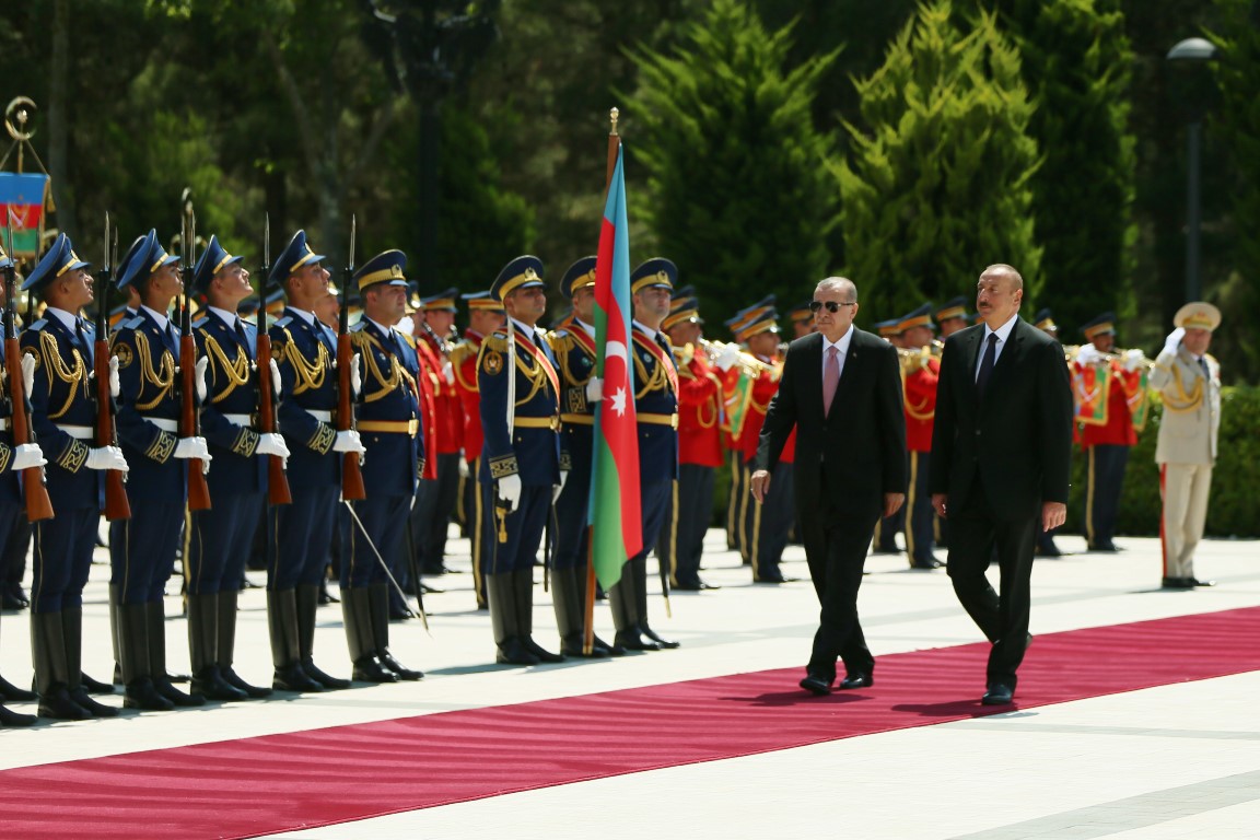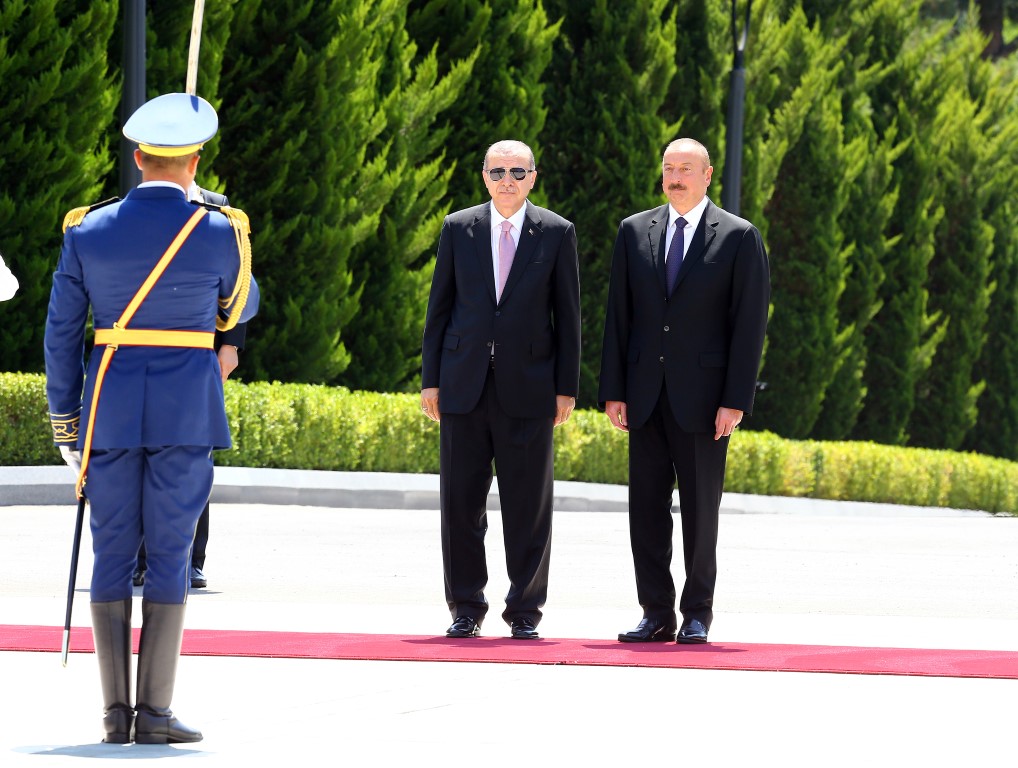 Türkiye Cumhurbaşkanı Recep Tayyip Erdoğan, Azerbaycan Cumhurbaşkanı İlham Aliyev tarafından resmi törenle karşılandı.