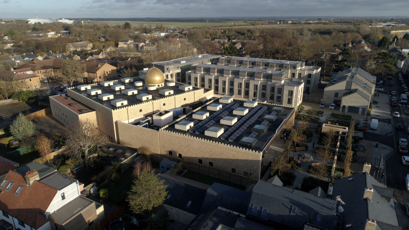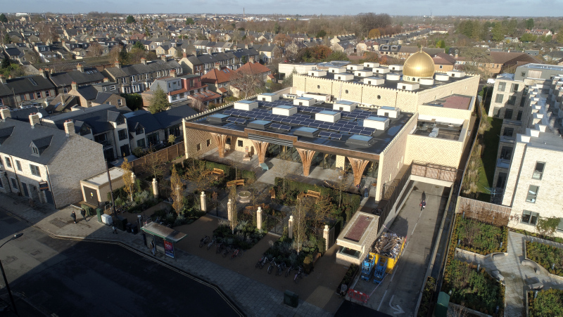 Cumhurbaşkanı Recep Tayyip Erdoğan'ın İngiltere'de açacağı Cambridge Merkez Camii, İslami geleneklere bağlı kalınan ödüllü mimarisinin yanı sıra yağmur sularını depolayan, elektriğinin bir kısmını güneş enerjisinden sağlayan çevre dostu sistemleriyle dikkatleri çekiyor.