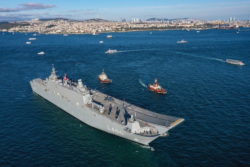 "Türkiye Cumhurbaşkanı Erdoğan'ın dediği gibi, oradan uygun mesajları vermek için şu anda İzmir'e doğru yola çıkan TCG Anadolu'yu Mavi Vatan'ın Koruyucusu olarak nitelendirdi."