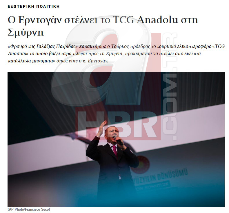 Erdoğan'ın TCG Anadolu'nun İzmir'e gideceğini açıkladığını aktaran ERT ise "Erdoğan'ın çifte mesajı" başlığını tercih etti.