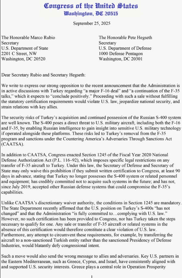 Oval Ofis'te Erdoğan–Trump zirvesi devam ederken, ABD Kongresi'nde Rum lobisinin devreye girdiği dikkat çekti. Aralarında Rum asıllı dört milletvekilinin de bulunduğu toplam 20 Kongre üyesi, ABD Dışişleri Bakanı Marco Rubio ve Savunma Bakanı Pete Hegseth'e skandal bir mektup gönderdi.