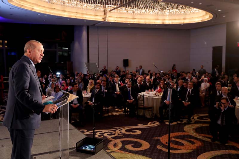 Resmi temaslarda bulunmak üzere ABD'ye giden Başkan Recep Tayyip Erdoğan burada coşkulu bir şekilde karşılandı. Başkan Erdoğan Birleşmiş Milletler 73. Genel Kurulu'na katılmak üzere ABD'ye gitti. Burada Birleşmiş Milletler Genel Kurulu öncesi katıldığı TURKEN Vakfı Geleneksel Gala Yemeği'nde bir konuşma gerçekleştirdi. Başkan Erdoğan bu konuşmasında İdlib krizi ve bölgede yaşanan gelişmelerle ilgili açıklamalarda bulundu. Erdoğan'ın konuşması sırasında izleyiciler sevgi gösterilerinde bulundu. İŞTE ABD'DE ERDOĞAN SEVGİSİ ABD'de yaşayan Türkler, Başkan Erdoğan'ın gelmesini böyle bekledi.