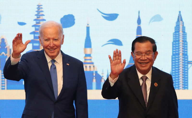 Kamboçya'da gerçekleştirilen ASEAN Zirvesi'ne ev sahipliği yapan Hun Sen, Güneydoğu Asya ülkelerinin liderlerinin yanı sıra Çin Başbakanı Li Keqiang ve ABD Başkanı Joe Biden dahil farklı ülkelerin temsilcileriyle görüşmeler yapmıştı. Ayrıca Hun Sen'in bir gala yemeğinde Biden ile yan yana oturduğu kamuoyuna yansımıştı.