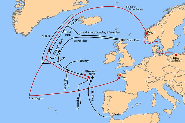 Bismarck Zırhlısı, ona eşlik eden Prizn Eugen, 2 adet destroyer ve mayın gemileri ile birlikte 18 Mayıs'ta Atlantik'e doğru harekat başlar.