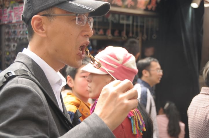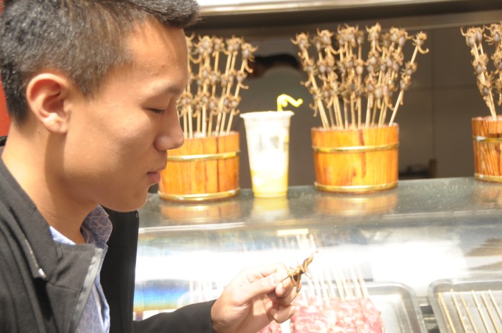 Böcekler, çeşidine ve boyuna göre değişik fiyatlara satılıyor. Caddede sıralanan lokantalarda insanların, kimilerinin korkudan sıçramasına neden olan böcekleri "afiyetle" yemesi ilginç görüntüler oluşturuyor.