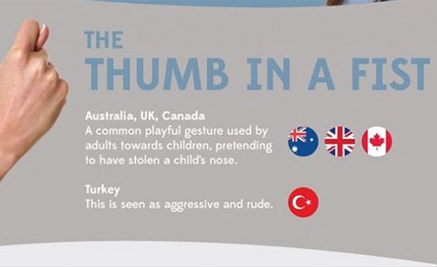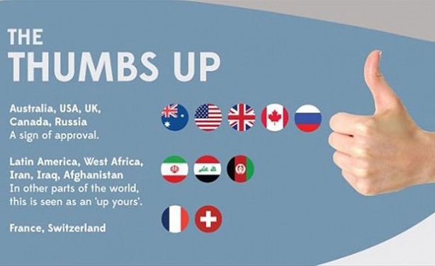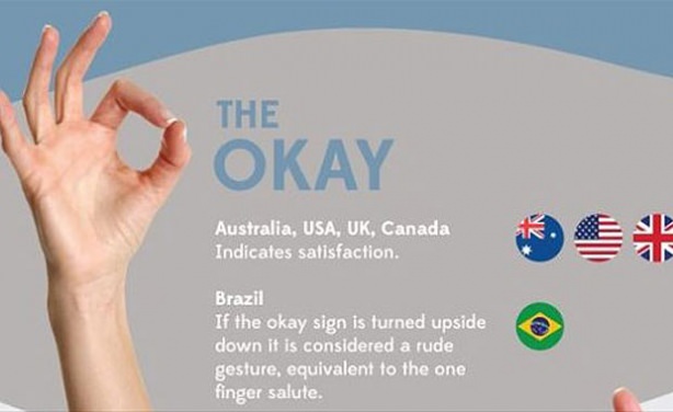 Okay (Tamam) işaretiAvustralya, ABD, Britanya ve Kanada'da tatmin olma anlamına geliyor. Brezilya'da aynı hareketi ters çevirip yaparsan hakaret olarak algılanıyor.