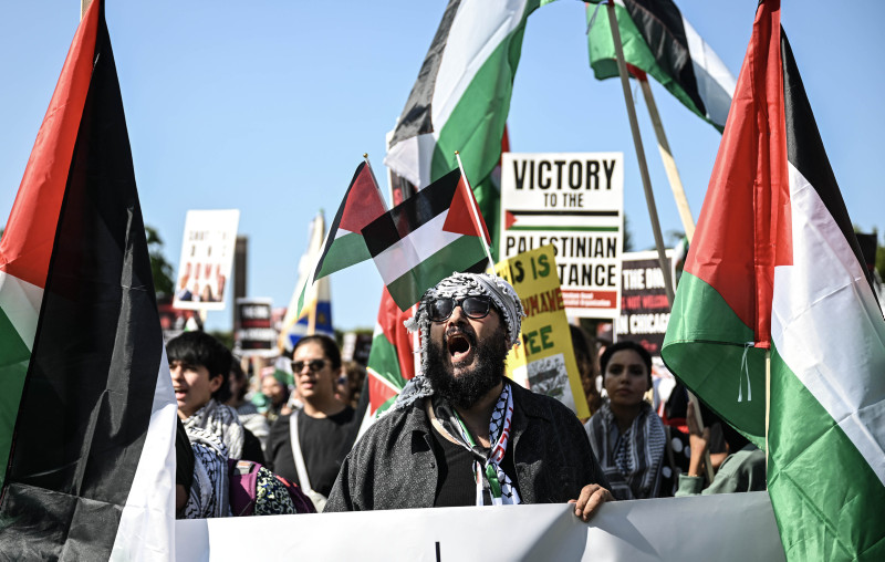 "Chicago Filistin İçin Adalet Koalisyonu" çatısı altında toplanan onlarca sivil toplum örgütüne mensup binlerce kişi, Gazze'de acil ateşkes ve ABD'nin İsrail'e silah yardımlarının son bulması için yürüdü.